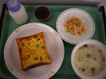 たまごトースト・ミルクポトフ・ごぼうチップサラダ・ぶどうゼリー