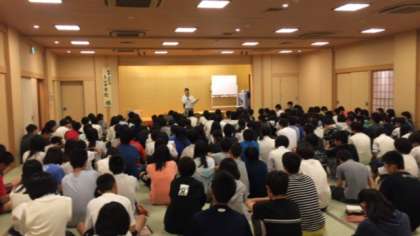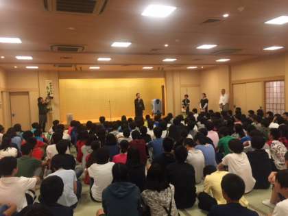 無事宿舎に戻りました。宿舎で入舎式の模様です。烏中3年生、本当に態度がいいのです。