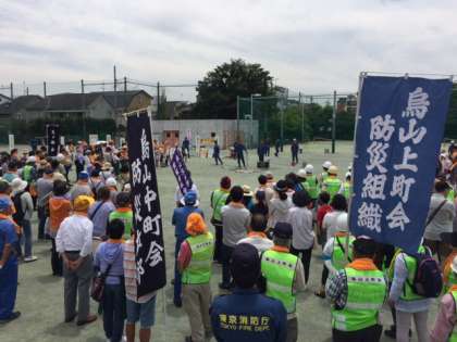梅雨とは思えない好天の中、平成28年度の烏山地区防災訓練が烏山中学校を会場にして行なわれました。本校からもボランティア部の生徒をはじめ、5人の教員が参加いたしました。
