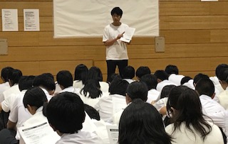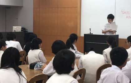 実行委員が中心になり、振り返りアンケート結果が示され、『真の烏中生になる』目標が達成出来たかを考えました。まだ課題はありますが、各自のどこが成長したかを再確認し、これから行うポスターセッションについて説明がされました。