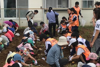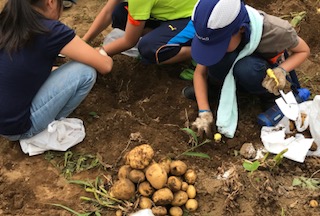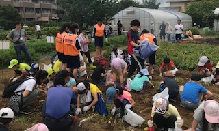 ボランティア部17名が、烏山北小学校の2、3年生約30名が参加した青少年烏山地区委員会主催のジャガイモ掘りをお手伝いしました。
