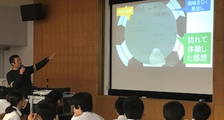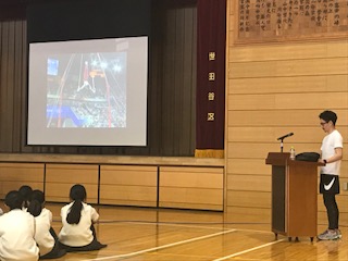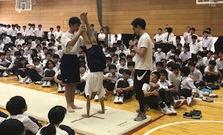 試験最終日でしたが、北京オリンピック男子体操団体銀メダリストの坂本功貴さんをお招きして講演と実技指導をしていただきました。銀メダルも触らせていただき、貴重な体験となりました。