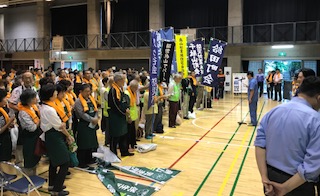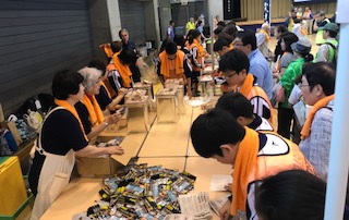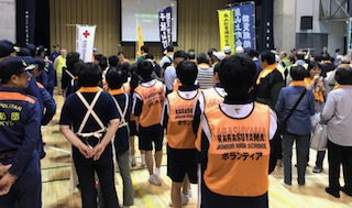 ボランティア部が訓練のお手伝いをしました。あいにくの雨で屋内の訓練のみとなりましたが沢山の参加がありました。地域の方の顔を覚え、いざという時には中学生が地域の力になって欲しいと考えています。