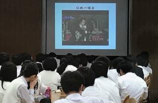 3年生は修学旅行から戻ると、歌舞伎の鑑賞教室も待っています。そこで今日は歌舞伎について映像を見て学習を深めました。