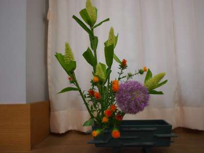 華道部では、華道の先生を講師として招き指導をしていただいています。