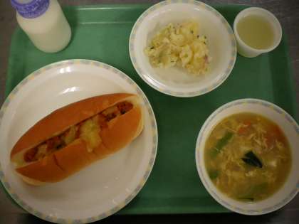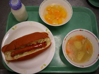 ミートサンド・ジャーマンポテト・とうもろこしのスープ・りんごゼリー
