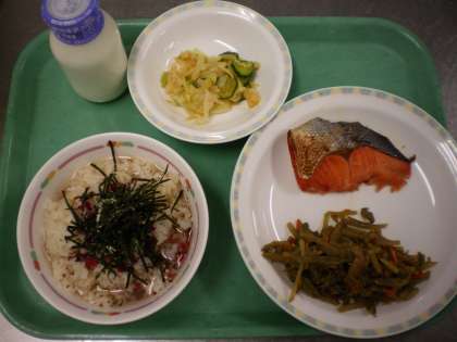 梅茶漬け・魚の照り焼・具だくさん金平・野菜の中華かけ