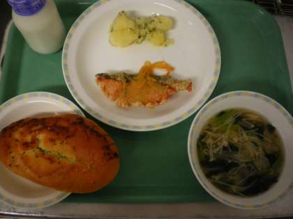 ガーリックトースト・魚のマリネソース・パセリポテト・ビーフンスープ