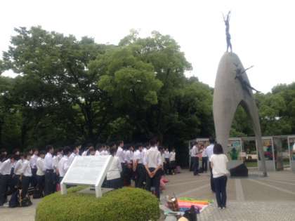 「原爆の子の像」前にて、黙祷、平和宣言、折り鶴奉納を行いました。