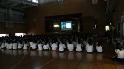 7月15日(金)成城警察署の方に来ていただき、『中学生としてあるべき姿』と『SNSの危険性』についてお話していただきました。写真は、用意していただいたDVDを観ているようすです。