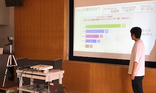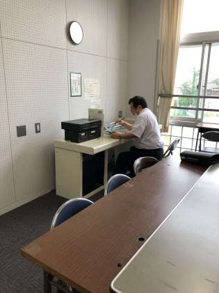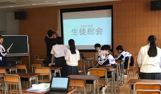 各委員会の委員長はランチルームに集合し、ランチルームからICTを活用して各教室に向け、活動方針を提示して承認を受けました。
