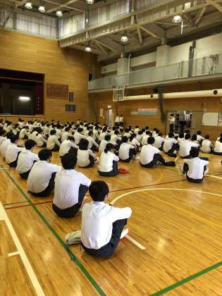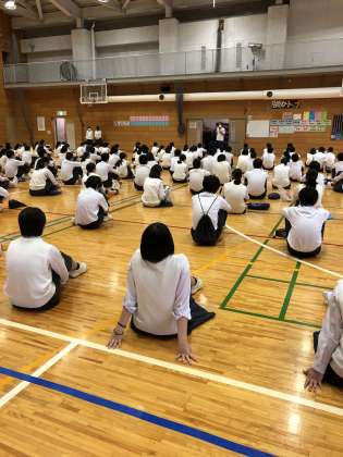 ソーシャルディスタンスを考え、体育館で、各学年、1学期まとめの学年集会をしました。
