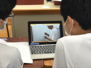 分散登校から始まった1学期でしたが、今日で40日間の1学期が終わります。生徒たちは各教室にて、放送による校長先生のお話を聞きました。