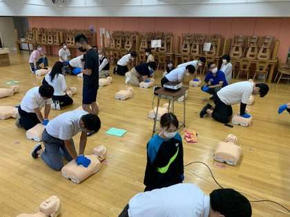 本日の午後、全教員を対象に、国士舘大学防災・救急救助総合研究所から講師を招聘し、「救急救命講習」を実施しました。命に係わることが起こった場合に、冷静な処置と対応ができるよう研修を受けました。