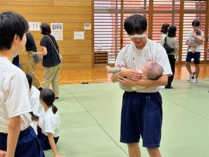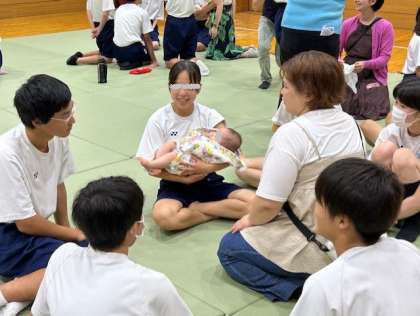 3年生が、家庭科の授業で、赤ちゃんとのふれあい体験を実施しました。泣いている赤ちゃんを一生懸命あやす姿などが見られました。地域の皆様のご協力に感謝いたします。