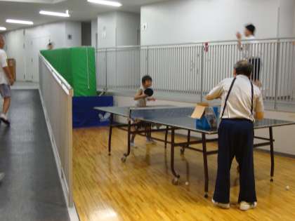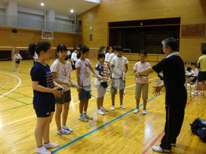 写真【左】【右】バドミントン部、卓球部の顧問の先生から指導を受け、真剣な目差しの小学生。