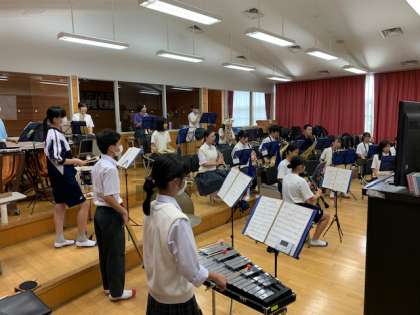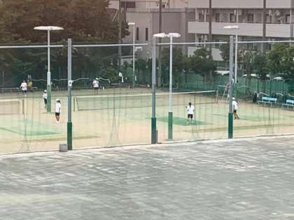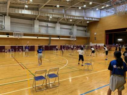 暑い日が続きますが、部活動頑張っています。バドミントン部は、他校のチームが来校し、試合を行っています。