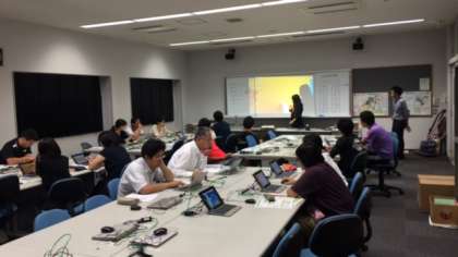 今年度より40台導入されたタブレットを使い、中間考査で生徒下校後、研修会を全教員で実施しました。