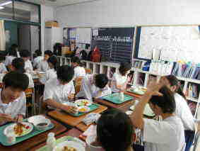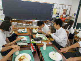 青光学園との給食交流(3年)