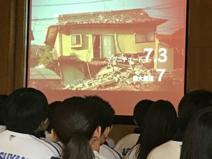 また、校舎内ではAEDを使った救命講習、DVDを見て消防士の方の講話を聞き災害への心構えを学びました。