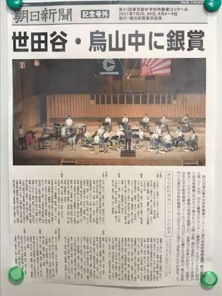 夏に昨年は中止となった東京都中学校吹奏楽コンクールがありました。無観客ではありましたが、烏山中学校も参加し銀賞を受賞しました。朝日新聞社より写真のような記念号外が送られきましたのでご紹介します。