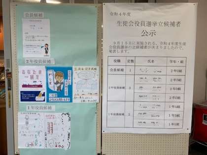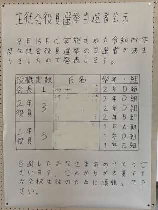 昨日行われた生徒会役員選挙の当選者が発表されました。これから烏山中の生徒会の中心となり活躍してくれることを期待します。