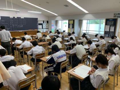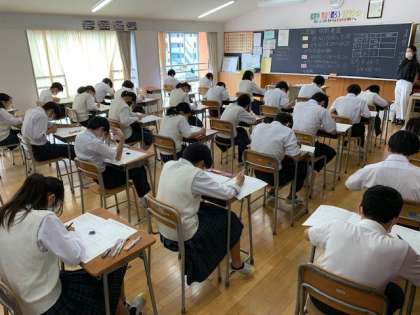今日と明日の2日間で中間考査を実施します。今日は理科、数学、美術です。ここまでの学習の成果を出すことができるよう最後まであきらめずに取り組みましょう。