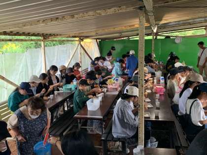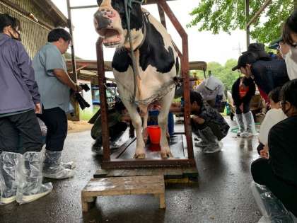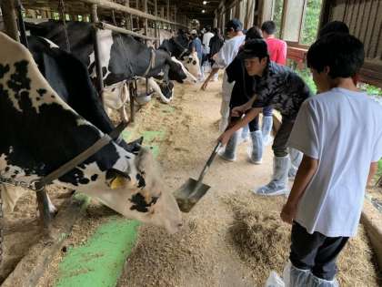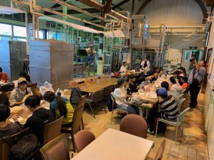 搾乳、餌やり体験の後は、バター作りです。皆上手にできました。出来上がったバターをパンにつけていただきました。美味しかったです。