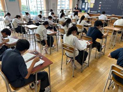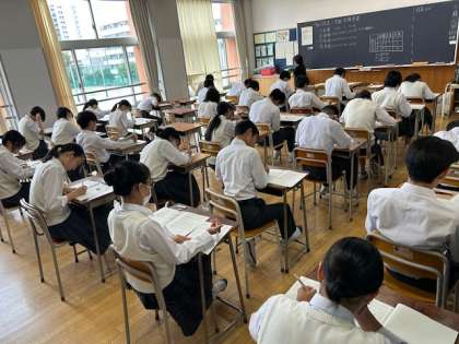 最後の振り返り。これで終了です。1日英語漬けで疲れた様子の生徒もいますが、楽しかったようです。気をつけて帰りましょう。