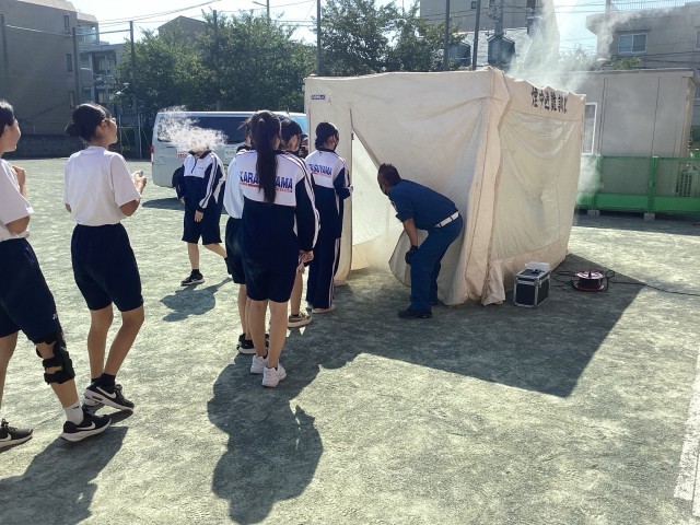 昨日、成城消防署のご協力で総合防災訓練を実施しました。災害はいつどんな時に起こるか予測ができません。知識と準備が被害を最小限に抑えることができます。