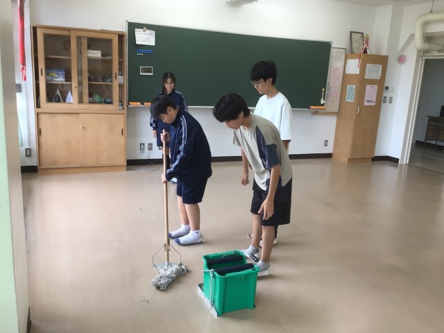 【1学年・3学年】大掃除の後のワックスかけ