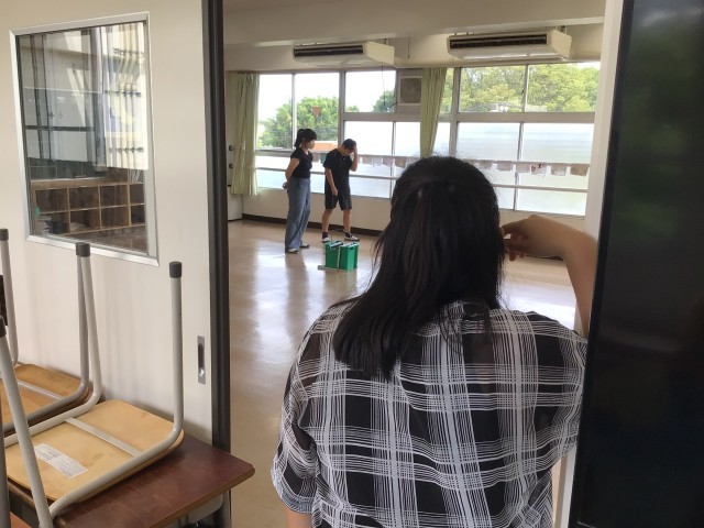 初めて、ワックス掛けをする1年生の元には、3年生の整備委員が教室に来てくれて、丁寧にやり方を教えてくれました。