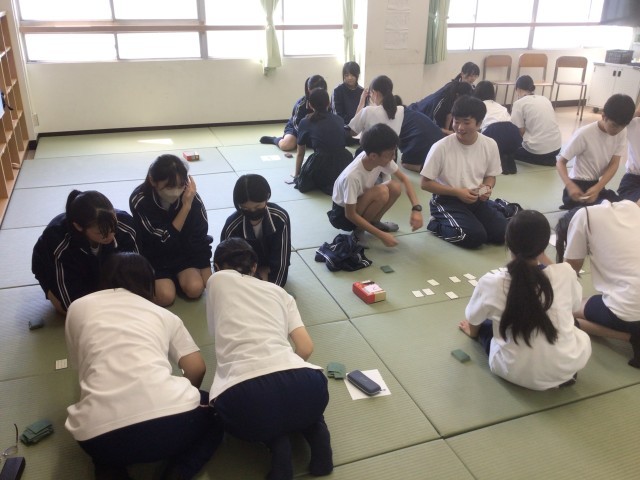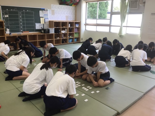 百人一首部の親善試合が行われました。用賀中学校の百人一首部と対戦です。