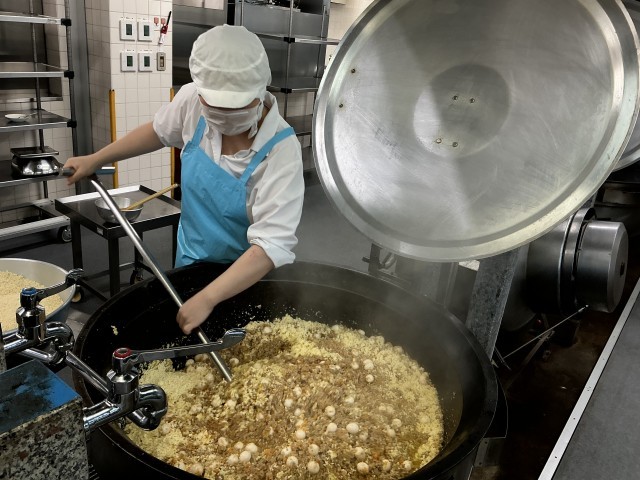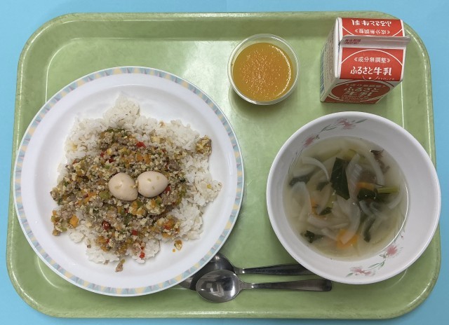 バジルは、学校の花壇で育てたものを使用しました。とれたて新鮮で、香りがよく、ガパオライスのアクセントになりました。