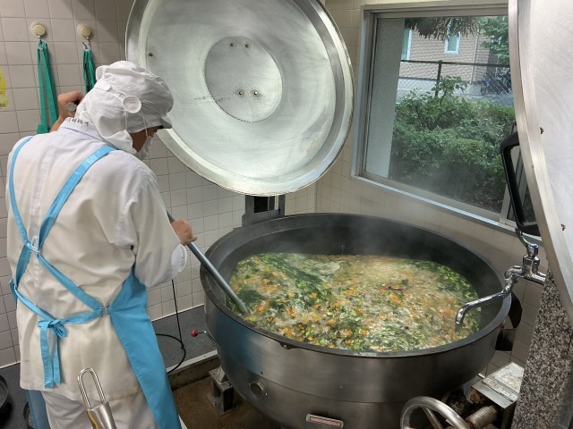 スープは空芯菜のスープを予定していましたが、今夏の猛暑の影響で、確保が難しく、小松菜のスープに変更になりました。