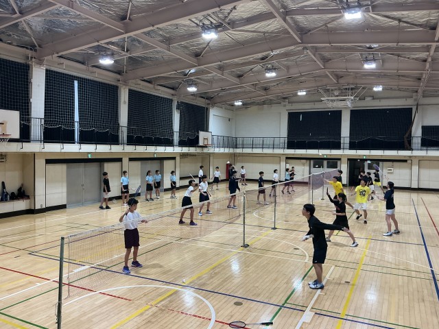 調布南高校を招いて合同練習を行いました。フットワークやスマッシュの打ち方など、実践的な技術を高校生から教えてもらい、中学生にとって大変貴重な時間となりました。