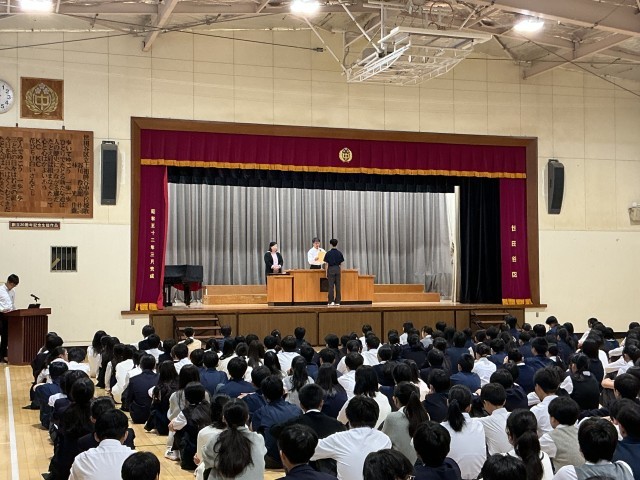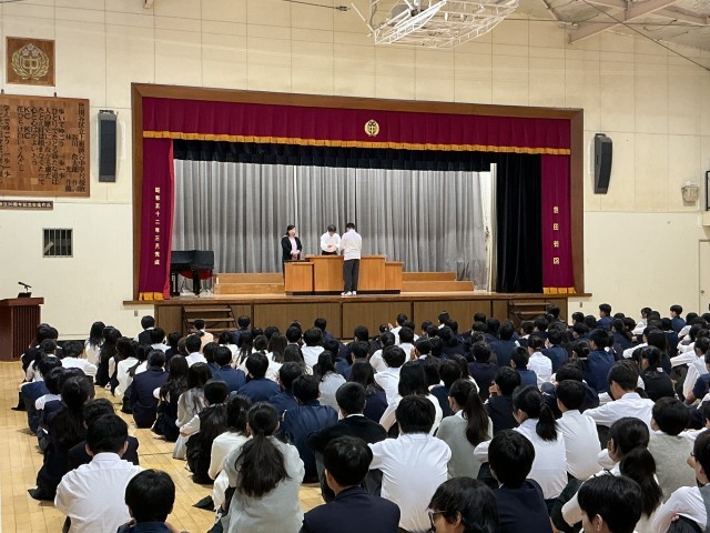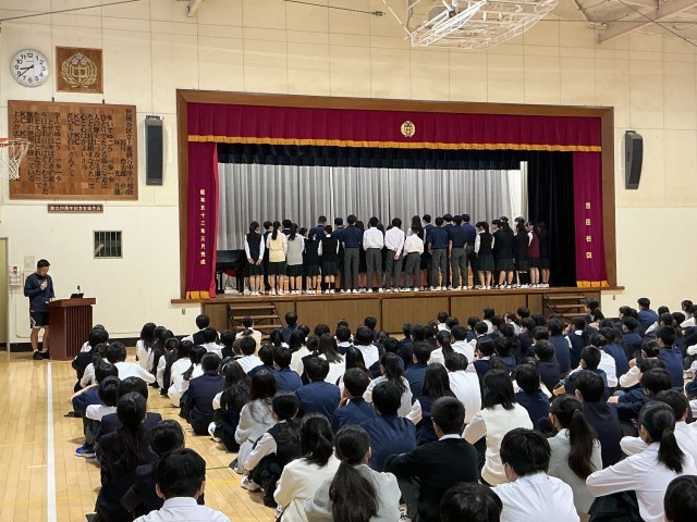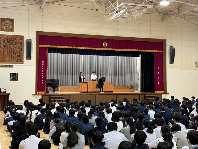 本日の生徒会朝礼では、後期生徒会委嘱式が行われました。