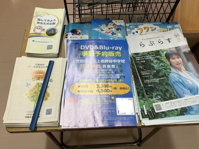 販売のチラシは、音楽祭の前に、生徒を通じてご家庭に配布していますが、無くしてしまった場合、職員室の配布ボックス前に余りが置いてあります。