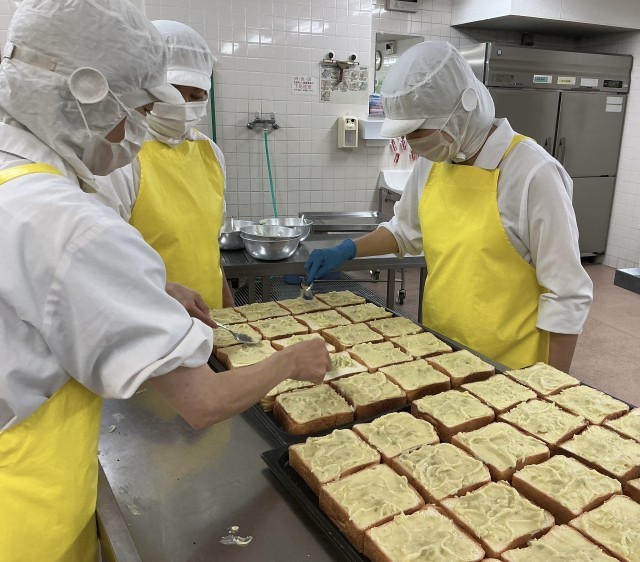 10月24日 給食室のひとコマ 公開日 2025/10/24 更新日 2025/10/24 給食 おいもトーストを作っている様子です。さつま芋を蒸してつぶし、バターや砂糖、牛乳と混ぜ合わせてスイートポテトを作り、食パンに塗ってオーブンで焼きました。今日もさつま芋は紅はるかを使用しました。新メニューでしたが、秋の味覚を感じる、ほんのり甘いトースト、生徒たちはよく食べてくれました。 いいね(0)