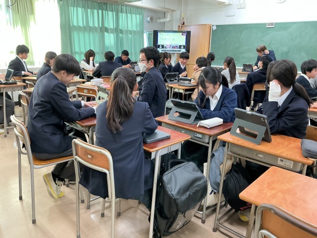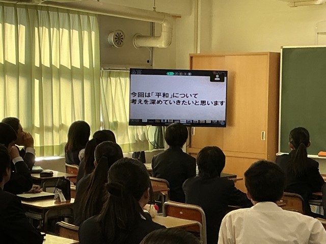 生徒たちは動画視聴や話し合いを通じて、「平和」についての考えを深めていました。