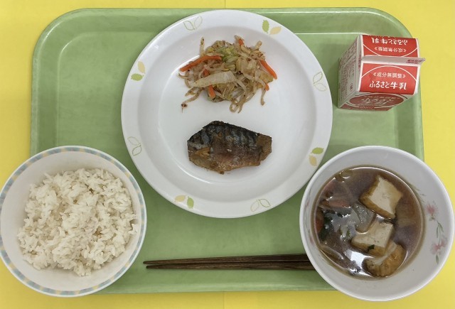 ごはん、さばのぬか炊き、白菜のおひたし、けんちん汁、牛乳