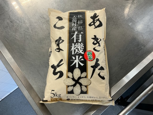 有機米給食の日ということで、今回は秋田県大潟村産の「あきたこまち」が届きました。