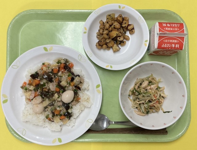 11月7日の給食 公開日 2025/11/07 更新日 2025/11/07 給食 【献立】海鮮あんかけご飯、バンバンジー、お豆かりんとう、牛乳海鮮あんかけご飯には、アサリとエビが入っています。他にも豚肉や野菜、うずらの卵などが入っており、具沢山なあんかけです。魚介とたくさんの具材が合わさり、旨みたっぷりでした。 いいね(0)