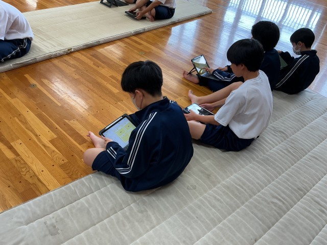 1枚目、2枚目の写真は、マットに段差をつけて練習をしたり、平らなマットで練習したり、それぞれ自分の実力に合わせて個別最適化された学びを行っている様子です。