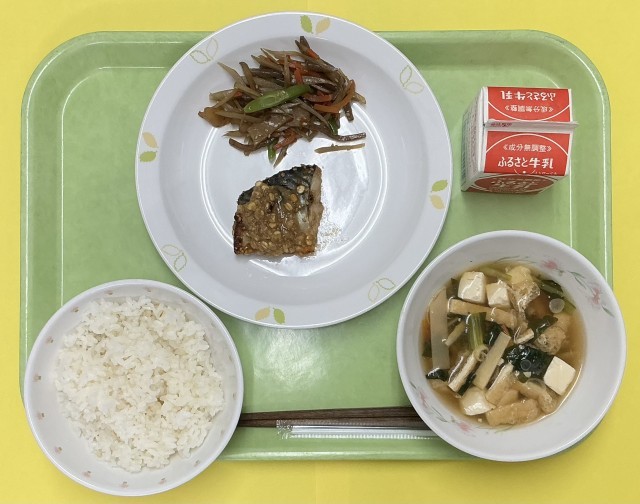 ごはん、さばの麦みそ焼き、きんぴらごぼう、吉野汁、牛乳