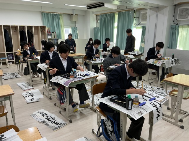 本日の授業では、楷書または行書で書かれたお手本を1枚選び、清書を提出しました。