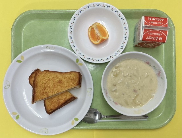 クロックムッシュ、ホワイトビーンズシチュー、はれひめ、牛乳