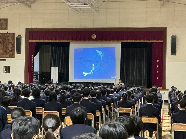 ご自身が撮影されたイルカやクジラの神秘的で壮大な映像からクイズを出題されたり、鳴き声や歌声を聞かせてくださったりしました。