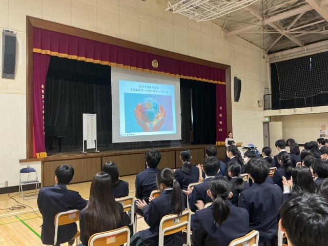 「自然の世界をのぞいてみよう 自然の声に耳をすませて」というテーマで、「ちきゅうの学校」生徒会長・小笠原愛様がご講演になりました。