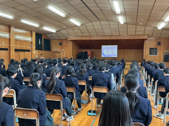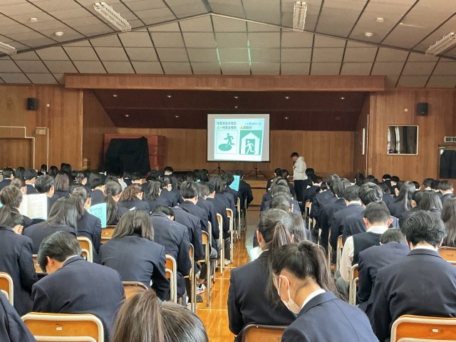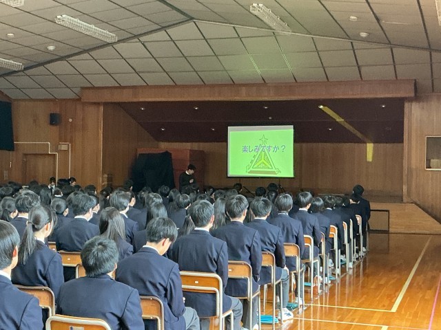 2年生は明日の校外学習に向けて、学年集会での事前指導を行いました。